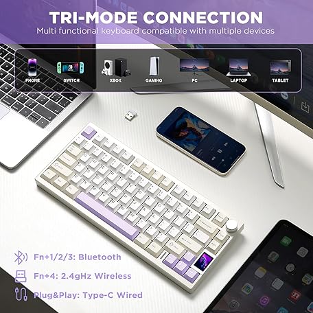 Thông tin sản phẩm YUNZII AL80 Wireless Mechanical Keyboard,Full Aluminum CNC, Smart LCD Display,Hot Swappable Gasket Mount 75% Layout with Knob,BT/2.4G/USB-C,QMK/VIA Support for Win/Mac (Beige, Gateron Zero Switch)