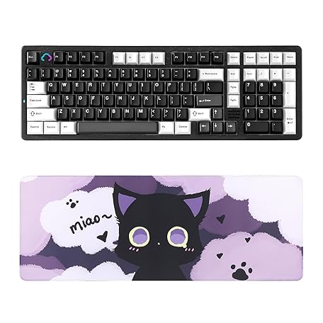 YUNZII AL98 QMK/VIA Wireless Mechanical Gaming Keyboard(Black, Milk Switch), Gaming Mouse Pad(Black cat, 31.49'' x 11.8'')