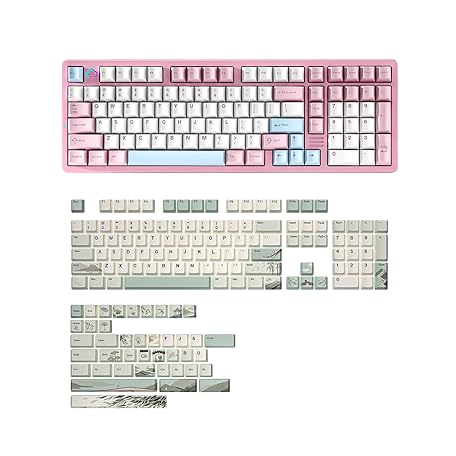 YUNZII AL98 QMK/VIA Wireless Mechanical Gaming Keyboard(Pink, Milk Switch),Spring Tea Keycap Cherry(Cherry Profile, Spring Tea)