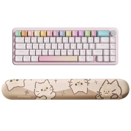 YUNZII B68 Wireless Mechanical Keyboard(Pink, Cocoa Cream V2 Switch),YUNZII Keyboard Wrist Rest(Cat)