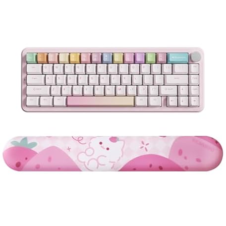 YUNZII B68 Wireless Mechanical Keyboard(Pink, Milk V2 Switch),YUNZII Keyboard Wrist Rest (Pink