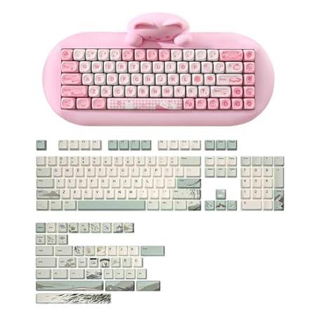 YUNZII C68 65% Wireless Mechanical Gaming Keyboard (Milk Switch, Pink), Spring Tea Dye Sub PBT Keycaps(Cherry Profile, Spring Tea)