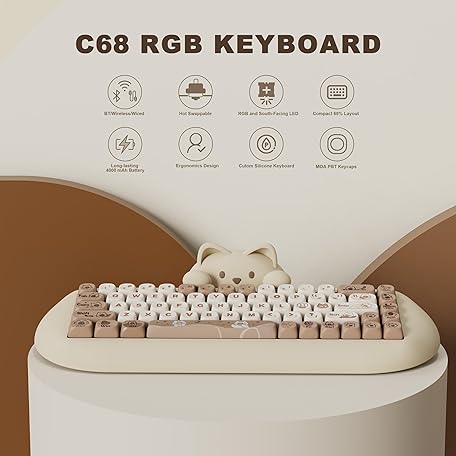 Thông tin sản phẩm YUNZII C68 65% Wireless Mechanical Gaming Keyboard (Milk Switch,Brown), YUNZII Keyboard Wrist Rest(Cat)