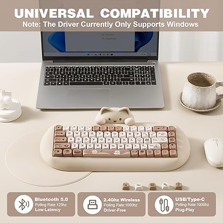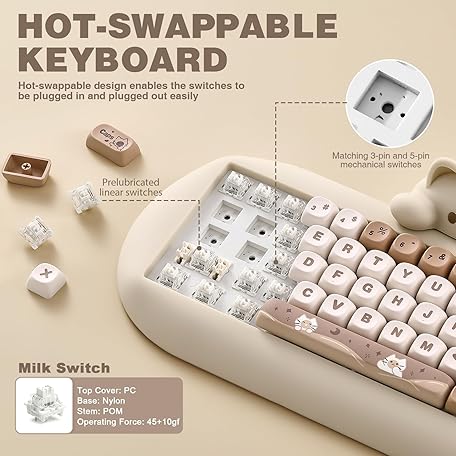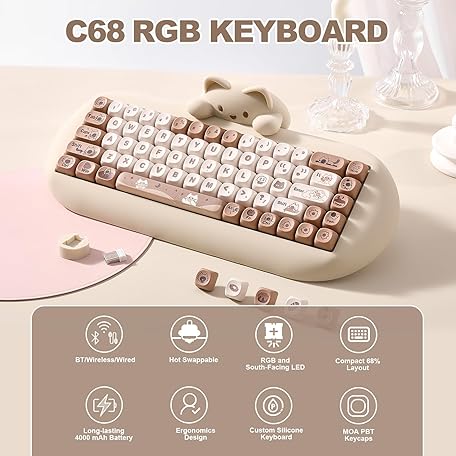 Thông tin sản phẩm YUNZII C68 Wireless Mechanical Keyboard,65% Layout,Hot Swap,Triple Mode BT5.0/2.4G/Wired, RGB Backlit NKRO,Cute Cat Silicone Ergonomic Design for Win/Mac (Brown, Milk Switch)