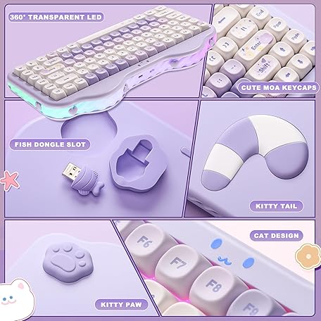 Thông tin sản phẩm YUNZII C75 Wireless Mechanical Keyboard,75% Layout, Hot-Swappable NKRO,BT5.0/2.4G/USB-C Mode,Dye-Sub PBT MOA Keycaps,RGB Gasket Mount,Cute Cake Design for Mac/Win/Gaming (Purple, Candy Switch)