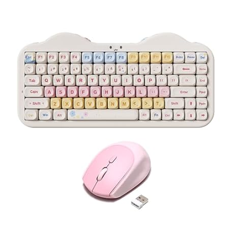 YUNZII C75 Wireless Mechanical Keyboard(Beige, Candy Switch), C2 Wireless Mouse(Pink)