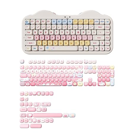 YUNZII C75 Wireless Mechanical Keyboard(Beige, Milk V2 Switch), MOG Dye Sub PBT Keycaps(Pink Ice Cream)