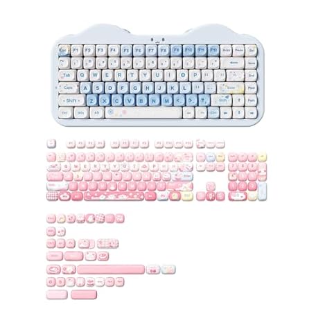 YUNZII C75 Wireless Mechanical Keyboard(Blue, Milk V2 Switch), MOG Dye Sub PBT Keycaps(Pink Ice Cream)