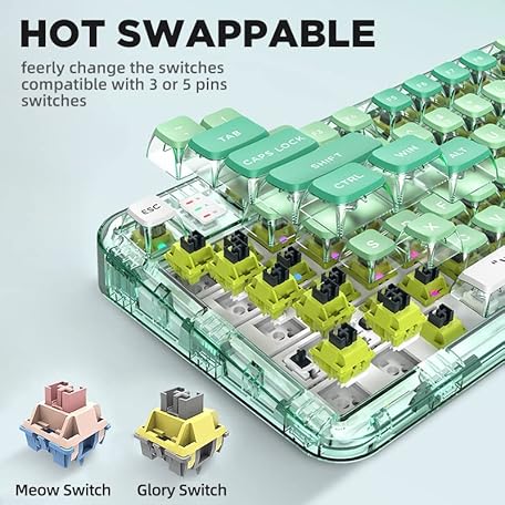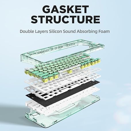 Thông tin sản phẩm YUNZII CK75 Wireless Hot Swappable Mechanical Keyboard, Transparent Acrylic Gasket Mounted Keyboard for for Windows/Mac(Meow Switch,Mint Green)