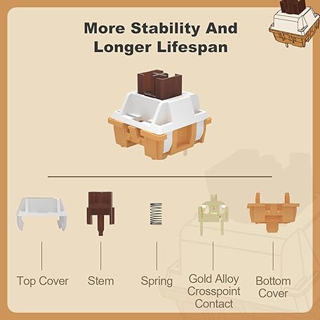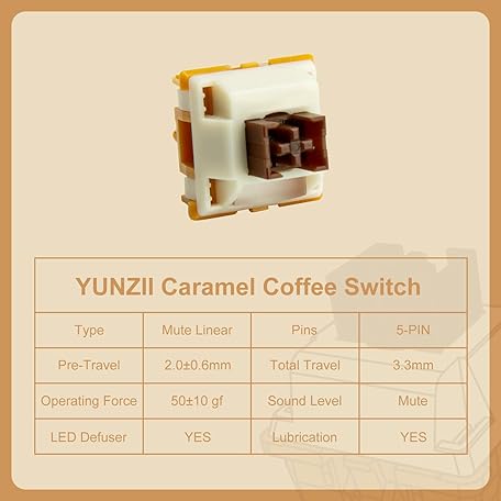 Thông tin sản phẩm YUNZII Custom Mechanical Keyboard Switches Set, 40gf Pre Lubed Silent Switch with POM Housing LED Defuser, 5 Pins Silent Switch for Mechanical Keyboards,Gaming and Programming(35Pcs,Caramel Coffee)