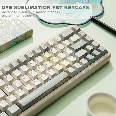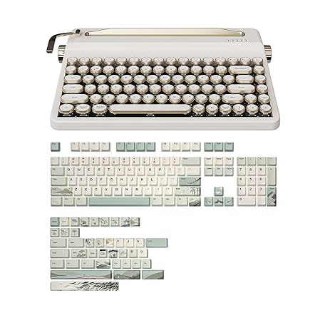 YUNZII QL75 Wireless Typewriter Retro Mechanical Keyboard (White, Onyx Switch),Spring Tea Keycap Cherry(Cherry Profile, Spring Tea)