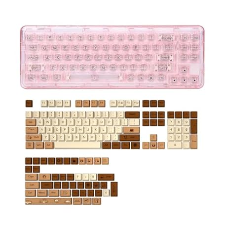 YUNZII X71 Transparent Mechanical Keyboard with Clear Keycaps(Crystal Ice Switch,Pink), Coffee Cat Dye Sub PBT Keycaps(Cherry Profile, Coffee Cat)