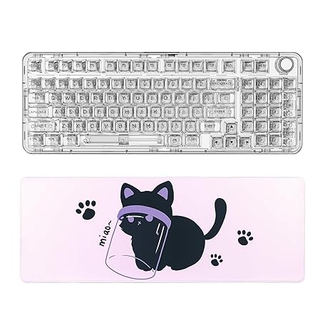YUNZII X98 QMK/VIA Wireless Mechanical Gaming Keyboard(White, Snow Switch), Gaming Mouse Pad(Naughty cat, 31.49'' x 11.8'')