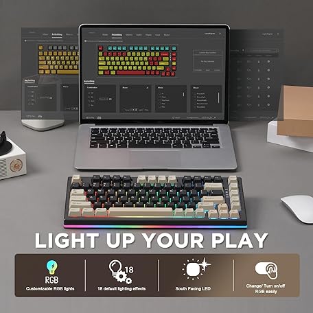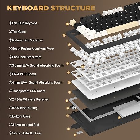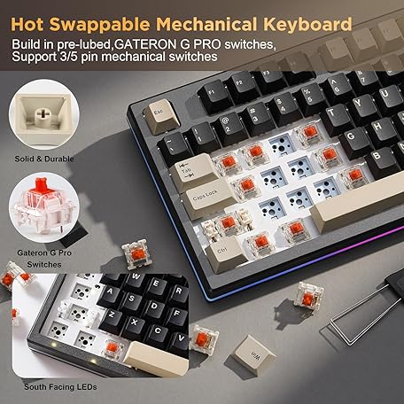 Thông tin sản phẩm YUNZII YZ75 75% Hot Swappable Wireless Gaming Mechanical Keyboard, RGB Backlights, BT5.0/2.4G/USB-C, Dye Sub PBT Keycaps for Linux/Win/Mac(Gateron G Pro Black, Black)