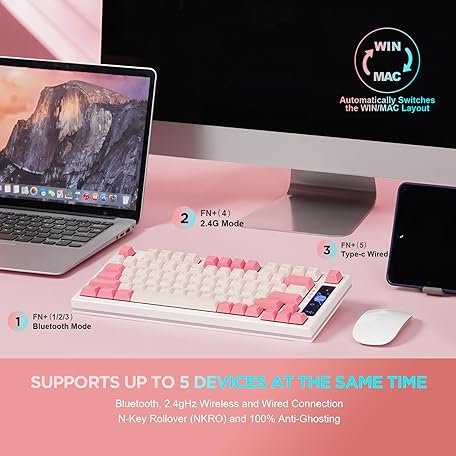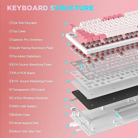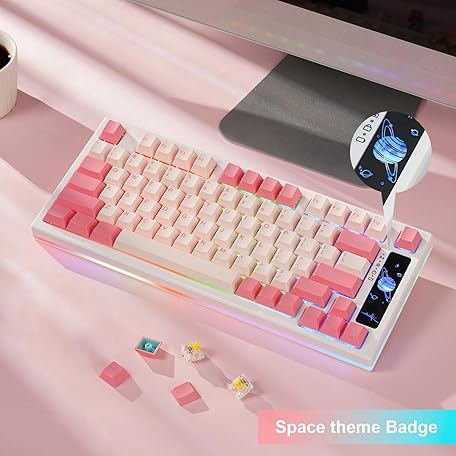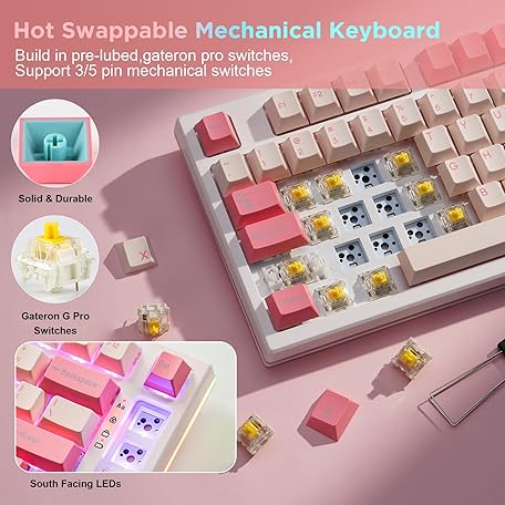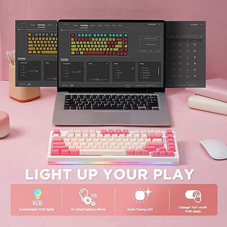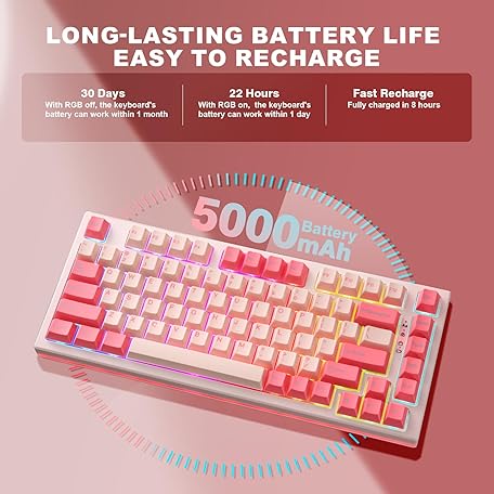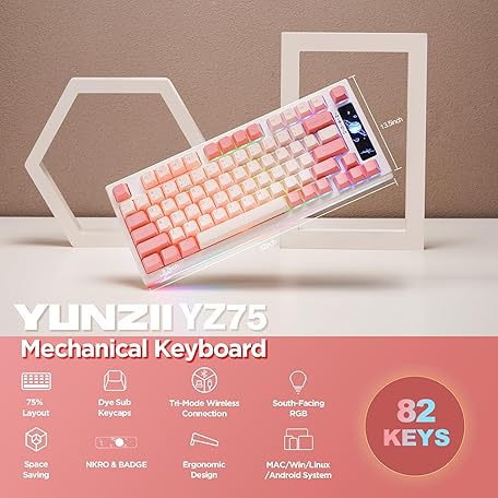 YUNZII YZ75 75% Hot Swappable Wireless Gaming Mechanical Keyboard, RGB Backlights, BT5.0/2.4G/USB-C, Dye Sub PBT Keycaps for Linux/Win/Mac(Gateron G Pro Red, Red)