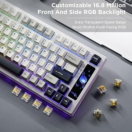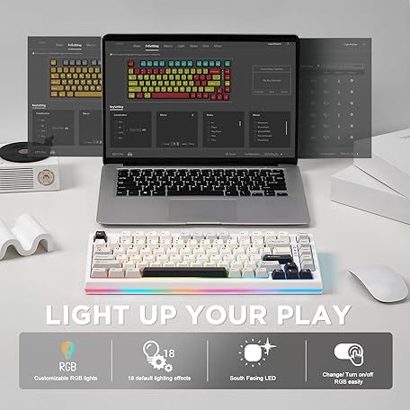 Thông tin sản phẩm YUNZII YZ75 75% Hot Swappable Wireless Gaming Mechanical Keyboard, RGB Backlights, BT5.0/2.4G/USB-C, Dye Sub PBT Keycaps for Linux/Win/Mac(Gateron G Pro Red, White)