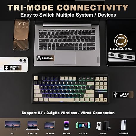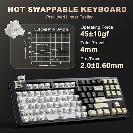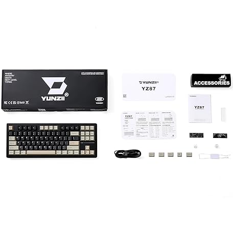 Thông tin sản phẩm YUNZII YZ87 Gasket Mechanical Keyboard,TKL Wireless Hot Swappable with 5-Layer Padding, BT5.0/2.4G/USB-C NKRO RGB Backlit for Win/Mac (Black, Milk Switch)