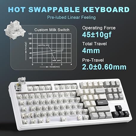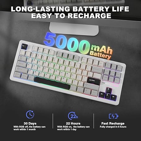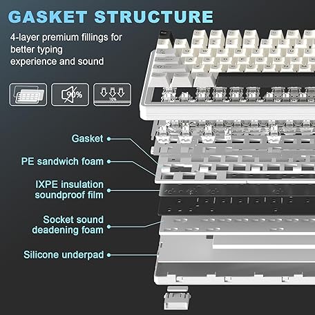 Thông tin sản phẩm YUNZII YZ87 Gasket Mechanical Keyboard,TKL Wireless Hot Swappable with 5-Layer Padding, BT5.0/2.4G/USB-C NKRO RGB Backlit for Win/Mac(White, Milk Switch)