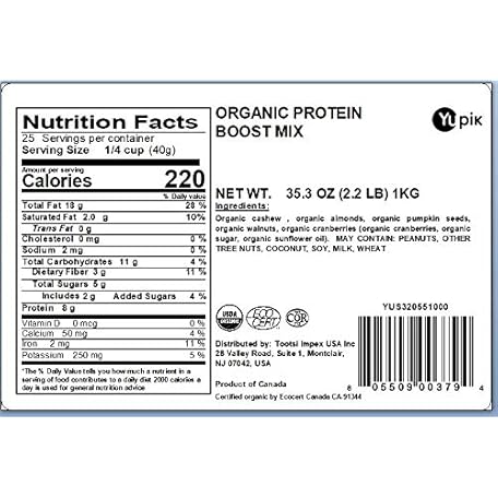 Thông tin sản phẩm Yupik Organic Protein Boost Trail Mix, 2.2 Lb, A Mix Of Cashews, Almonds, Pumpkin Seeds, Walnut, Cranberries, Pack of 1