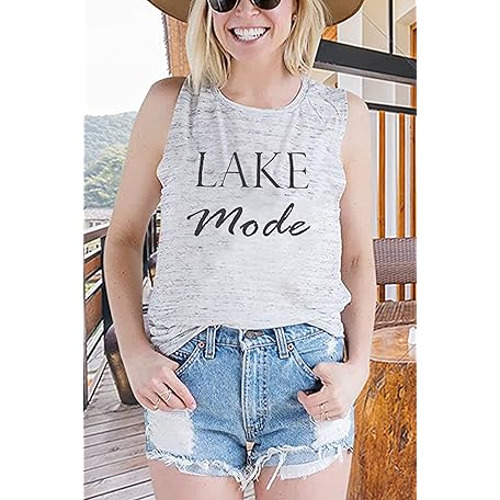 YUYUEYUE Lake Mode Tank Top Women Lake Life Summer Vacation Funny Cute Vest Shirt Tee