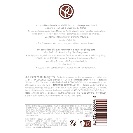 • Yves Rocher Monoï de Tahiti Monoi Moisturizing Body Milk Coconut and Tiare Scent Lotion All Skin Types 390 ml./13.1 fl.oz.