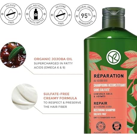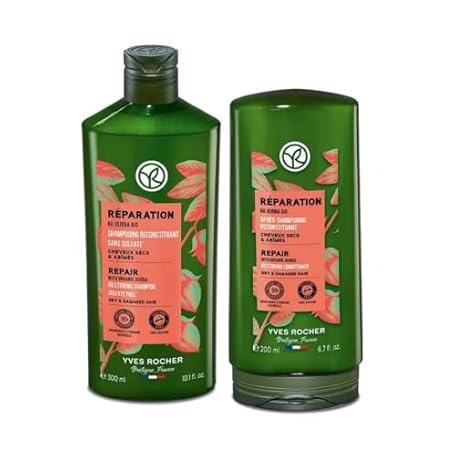 • Yves Rocher Reparation Duet for Nourishing and Restoring Hair with Jojoba Oil Shampoo and Balm-Conditioner Set