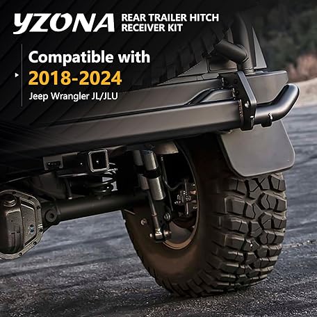 YZONA YZONA Tow Hitch 2 Inch, for Jeep Wrangler Tow Hitch Trailer Kit Compatible with 2018 2019 2020 2021 2022 2023 2024 JL JLU Hitch Receiver with Cover, 2 Inch Rear Bumper Towing Combo (2 Door & 4 Doors)