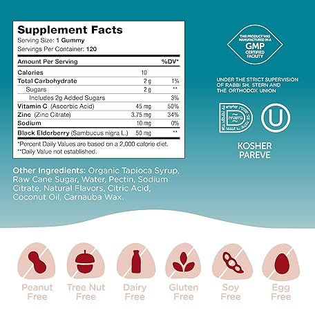 • Zahler - Chapter One Immune Support Gummies for Kids with Vitamins C, Zinc & Black Elderberry (120 Flavored Gummies) Kosher Immunity Vitamin C & Elderberry Gummies for Kids & Adults - Made in USA