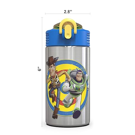Thông tin sản phẩm Zak Designs Toy Story 4 Buzz & Woody 15.5 ounce Water Bottle, One Hand Operation Action Lid and Built-in Carrying Loop, with Straw is Perfect for Kids