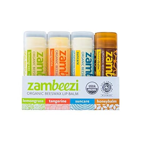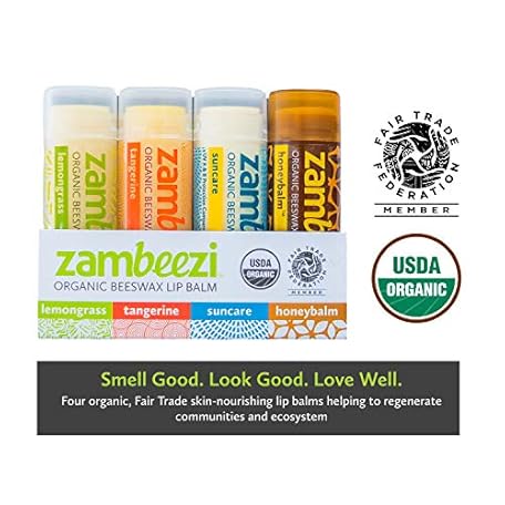 Sản phẩm ZAMBEEZI Fair Trade, Organic Beeswax Lip Balm - Variety 4 Pack (Lemongrass, Tangerine, Suncare and Honeybalm) - Ethically Sourced đang được bán với giá ưu đãi là $14.1591 tại nước Mỹ.