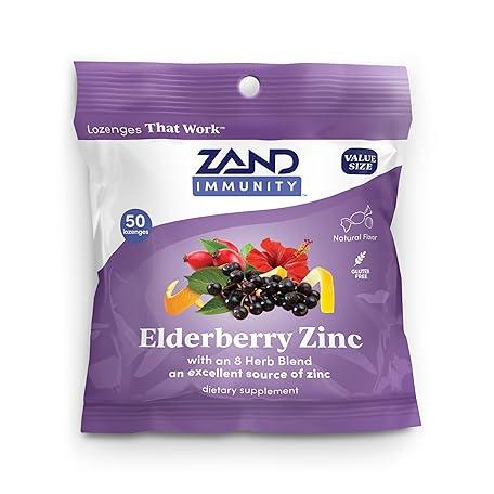 • ZAND HerbaLozenge Elderberry Zinc, Good-for-You Lozenges for Dry Throats, No Corn Syrup, No Cane Sugar, 50 Lozenges