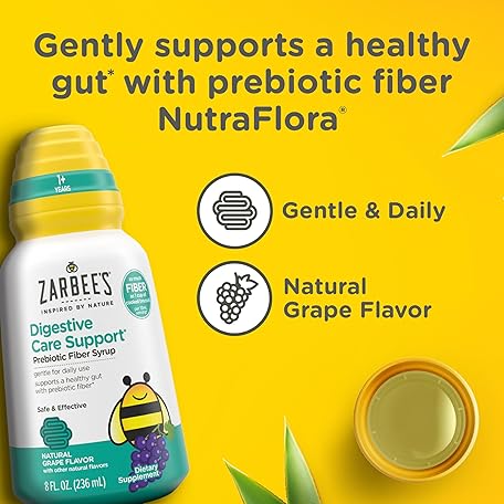 Thông tin sản phẩm Zarbee's Children’s Digestive Care Support* Prebiotic Fiber Syrup, Grape Flavor with Other Natural Flavors, Liquid Fiber for Kids, Daily Digestive Support, Gluten Free, Agave, 8 fl oz