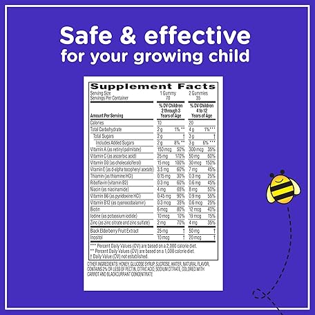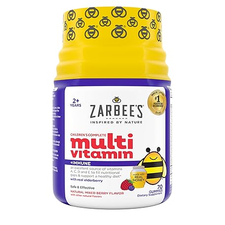 Thông tin sản phẩm Zarbee’s Complete Kids Multivitamin Gummies + Immune Support, Berry Flavor, Honey-Sweetened, Gluten-Free & Gelatin-Free, Vitamins A, C, D3, E, B6, B12, Folic Acid & B-Complex, 70 Count