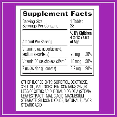 Thông tin sản phẩm Zarbee's Kids Immune Support, Vitamin C, D & Zinc Daily Immunity Vitamins for Children 4+ Years, Natural Tropical Fruit Flavor, 28 Chewable Tablets