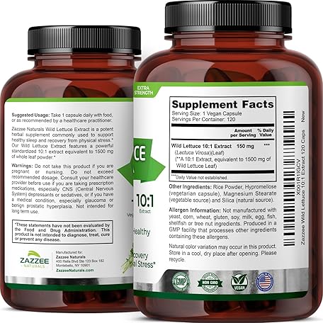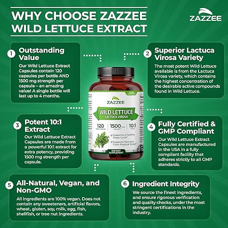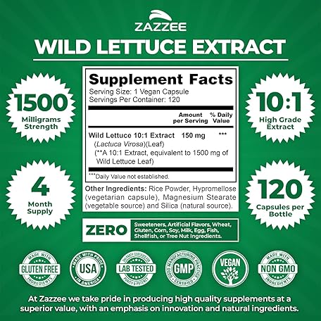Thông tin sản phẩm Zazzee Extra Strength Wild Lettuce 10:1 Extract, 1500 mg Strength, 120 Vegan Capsules, Potent Lactuca Virosa Variety, Concentrated 10X Extract, 100% Vegetarian, All-Natural, Non-GMO, Made in The USA