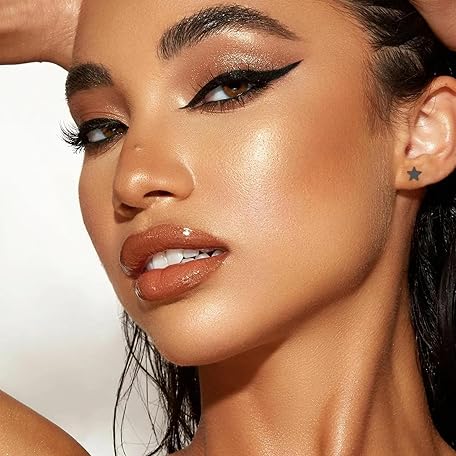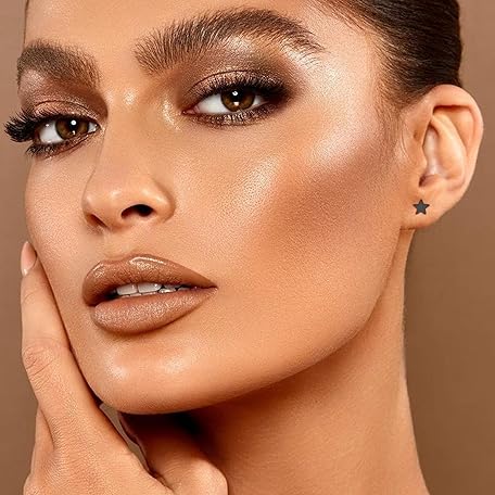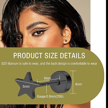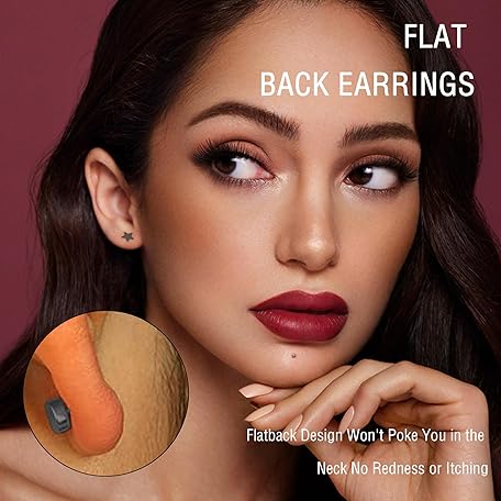 ZDE Women Flat Back Heart Earrings Non-Nickel Star Earrings Titanium Hypoallergenic Cartilage Moon Earrings Stud for Sensitive Ears Simple Classic 5mm Flat Stud Earring