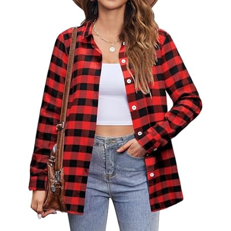 • Zeagoo Flannel Shirt Women Button Down Long Sleeve Plaid Shirts Collared Casual Work Tops S-2XL