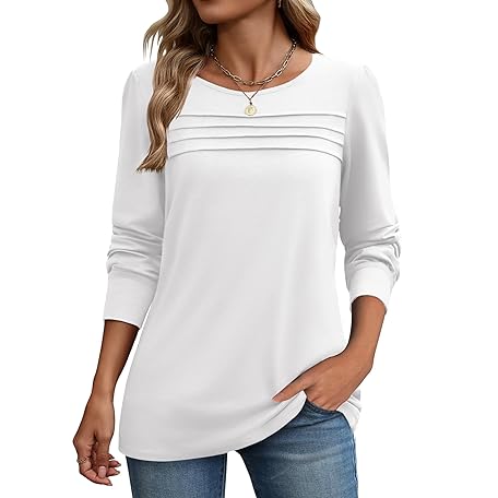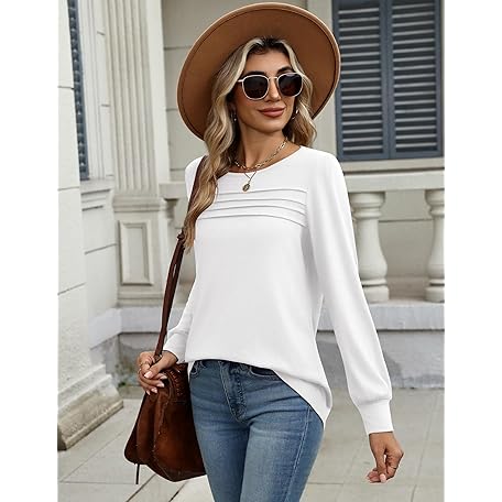 Zeagoo Long Sleeve Shirts for Women Casual Fall Fashion Crewneck Pleated Tunic Tops Work Outfit Blouse