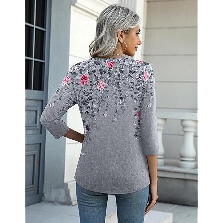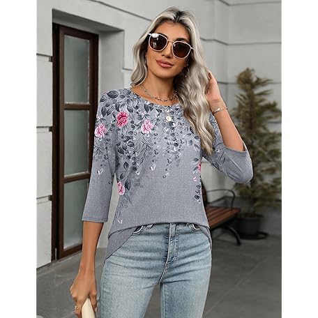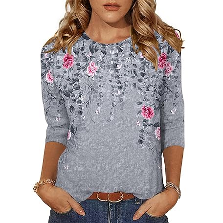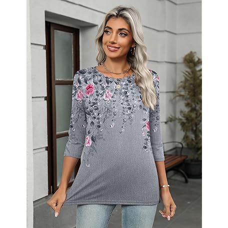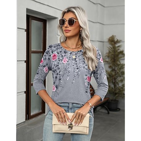 • Zeagoo Women's Casual 3/4 Sleeve T-Shirts Round Neck Cute Tunic Tops Basic Tees Blouses Business Work Tee Top