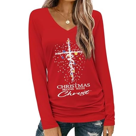• Zeagoo Womens T Shirts Long Sleeve V Neck Basic Tee Casual Loose Fit Soft Fall Tops Outfits 2025 S-XXL