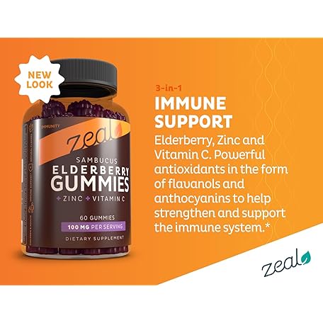 Sản phẩm Zeal Sambucus Elderberry Gummies + Zinc + Vitamin C - Daily Supplement for Children & Adults - Easy to Chew Vitamin Gummies - 100 mg Max Serving of Elderberry - 60 Count đang được bán với giá ưu đãi là $16.5571 tại nước Mỹ.