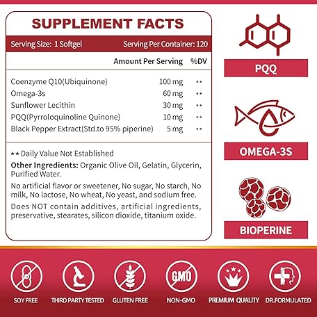 Thông tin sản phẩm ZEBORA CoQ10-100mg-Softgels with PQQ, BioPerine & Omega-3, High Absorption Coenzyme Q10 Supplement, Powerful-Antioxidant, Support Heart & Energy-Production 120 Servings, Non-GMO