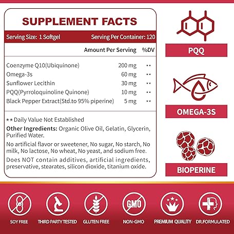 Thông tin sản phẩm ZEBORA CoQ10-200mg-Softgels with PQQ, BioPerine & Omega-3, 120 Servings Coenzyme Q10(Ubiquinone) Supplement for High-Absorption, Powerful-Antioxidant, Support Heart & Energy-Production