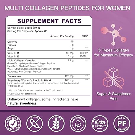 ZEBORA Multi Collagen Peptides Powder for Women – Hydrolyzed Collagen Peptides with D-Mannose & Women's Probiotics – Supports Skin, Hair, Nails, and Urinary Tract Health, Unflavored, 35 Servings