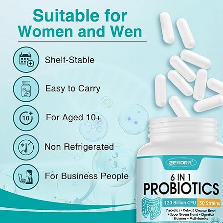 ZEBORA Probiotics for Women-Men Digestive Health with 120 Billion CFUs, Mens-Womens Probiotic for Gut Health, Immune Support, and Gut Detox with 45-Day Supply, 90 Veggie Capsules