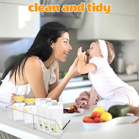 Zebrabox 2 Pack Breast Milk Storage Bottles Solution Set Compatible with Medela for Fridge,Plastic Organizer Bin with Divider for Breast Milk Bags, Food Pouches, Or Baby Food Jars/Containers/Bottles