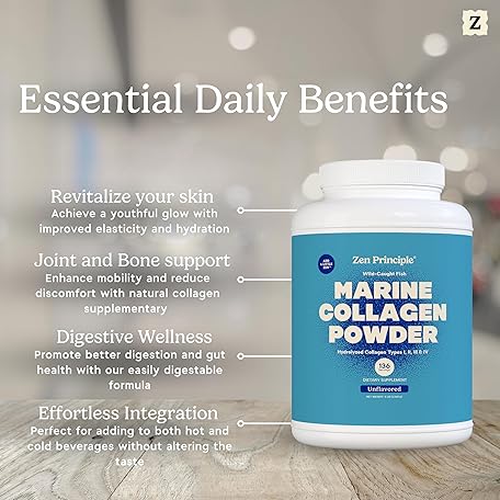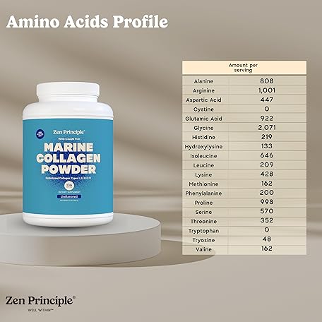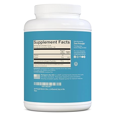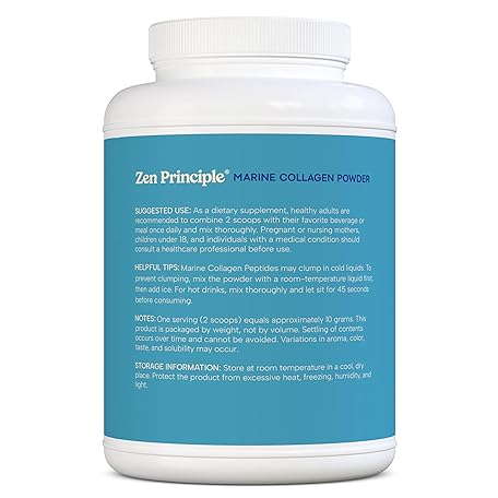 Thông tin sản phẩm Zen Principle Marine Collagen Peptides Powder 3 lb. Wild-Caught Fish, Non-GMO. Supports Healthy Skin, Hair, Joints, and Bones. Hydrolyzed Type 1 & 3 Protein. Amino Acids, Unflavored, Easy to Mix.