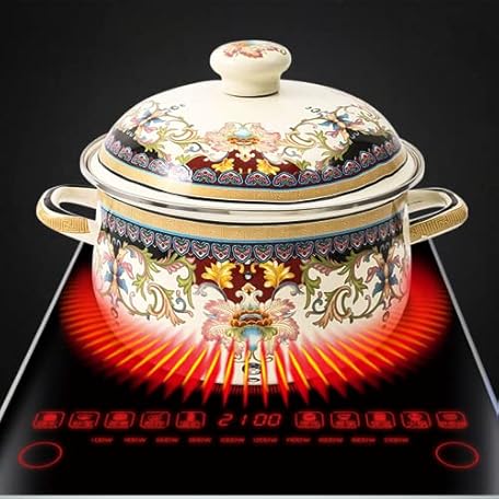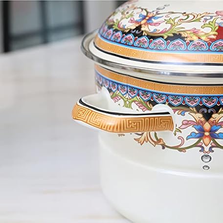 Thông tin sản phẩm ZENFUN Kitchen Enamel Stockpot with Lid, 4.5 Quart Retro Flower Stew Bean Cooking Pot, Vintage Thicken Soup Pot with Handles, Nonstick, Safe for Induction Cookers, Gas Stove