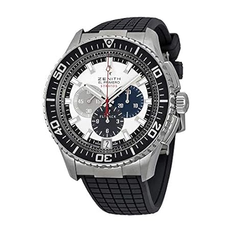 Zenith El Primero Stratos Chronograph Automatic Silver Dial Black Rubber Mens Watch 03206640569R515