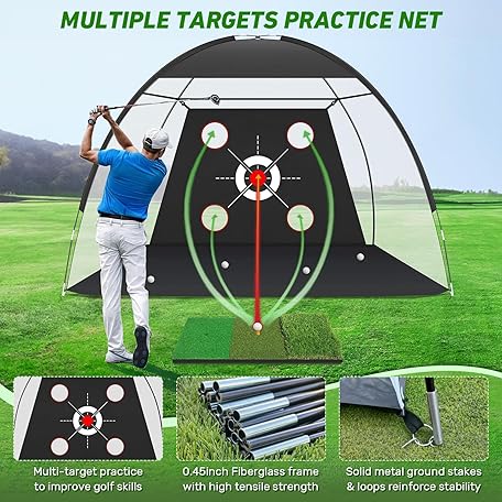 Thông tin sản phẩm Zensouds Golf Net, 10x7FT with Golf Practice Mat, Hitting Aid Nets for Backyard Driving Chipping Training Swing with Target Outdoor or Indoor– Gifts for Men/Dad/Him